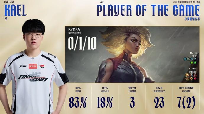 本局MVP给到开团扭转局势的Kael!