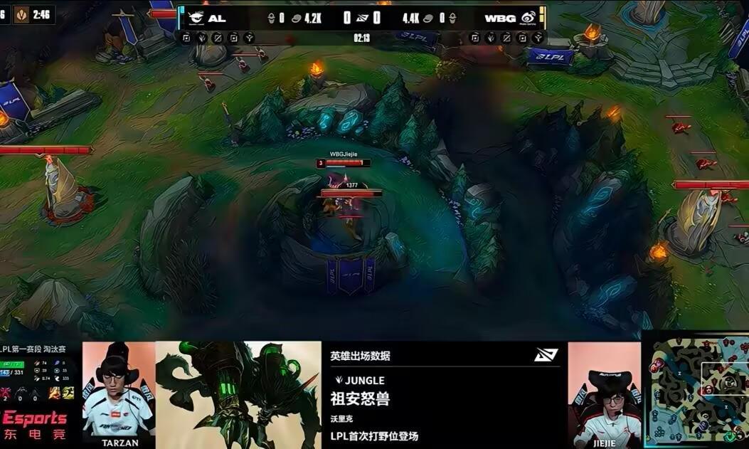 继昨天的辅助冰鸟后,今天又出场了打野狼人。第一条小龙团Jiejie狼人遭到逮捕,接下来Xiaohu也被锤石勾到击杀。但Jiejie的狼人走的是肉装路线,第三条小龙团Shanks岩雀失误挡住自家先锋撞塔,WBG拿到小龙后在野区开团,狼人大招定人后定点秒杀,WBG大获全胜。大龙刷新后WBG打出0换3开动大龙,随后又拿下火龙魂,WBG一波结束比赛,3-1战胜AL晋级败者组决赛!